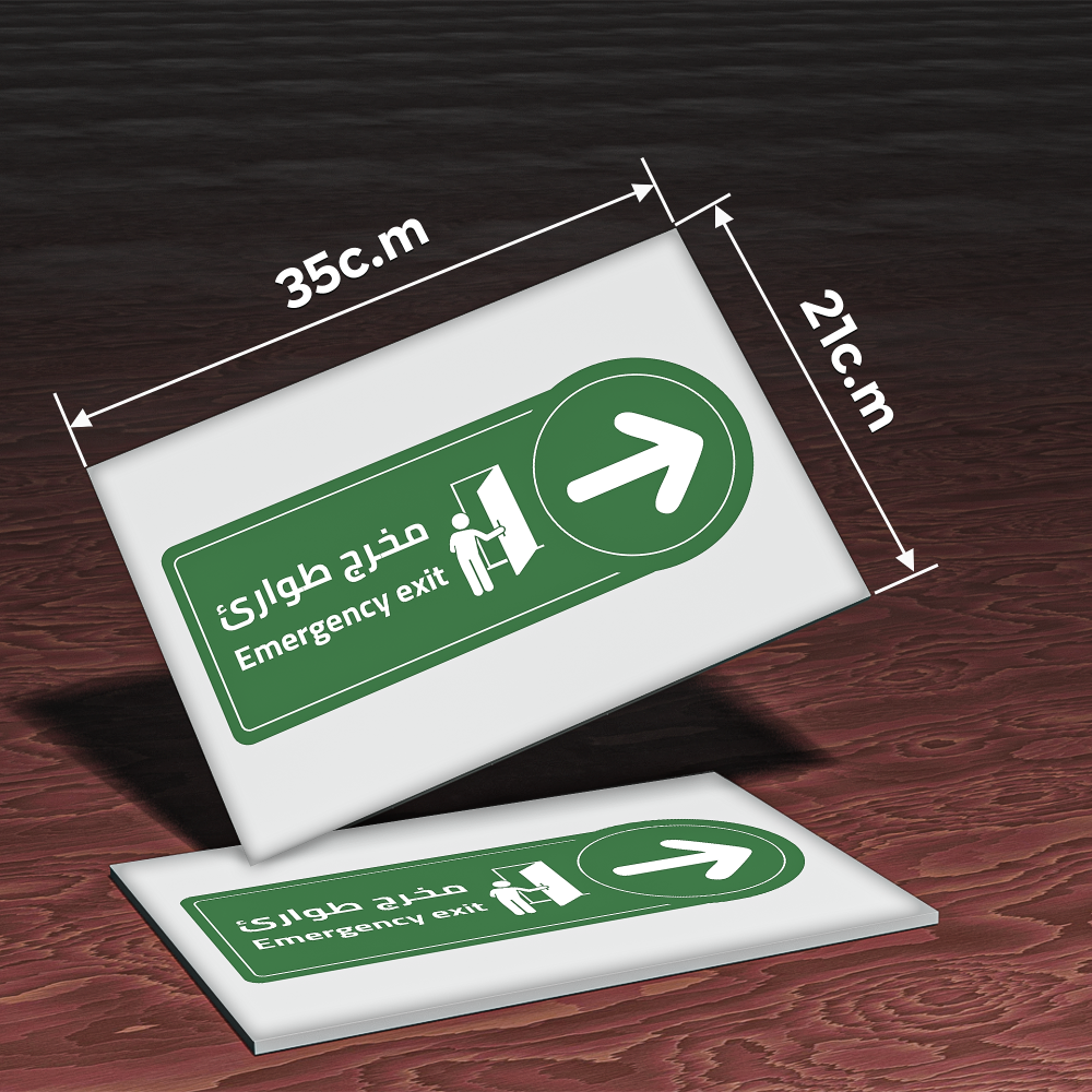 - صممت لوحة مخرج طوارئ بطريقة جيدة وسهلة في توجيه العملاء لأن عمليات الطوارئ والإخلاء يجب أن تتم بسرعة ويسر، فإن اللوحات الإرشادية للمخارج تعد من أهم الأشياء التي يجب الالتزام بها في تلك الأوقات لتوفير معايير السلامة والأمان